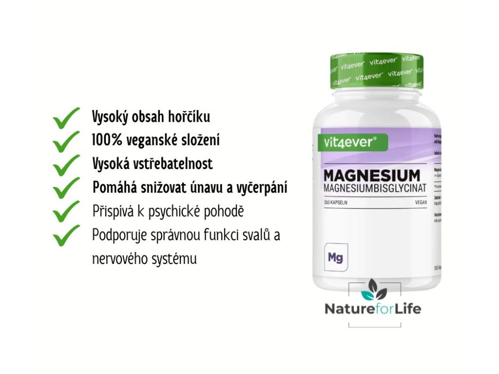 Vit4ever Magnesium bisglycinát 775 mg – 155 mg elementárneho horčíka Chelátová forma horčíka s vysokou využiteľnosťou
