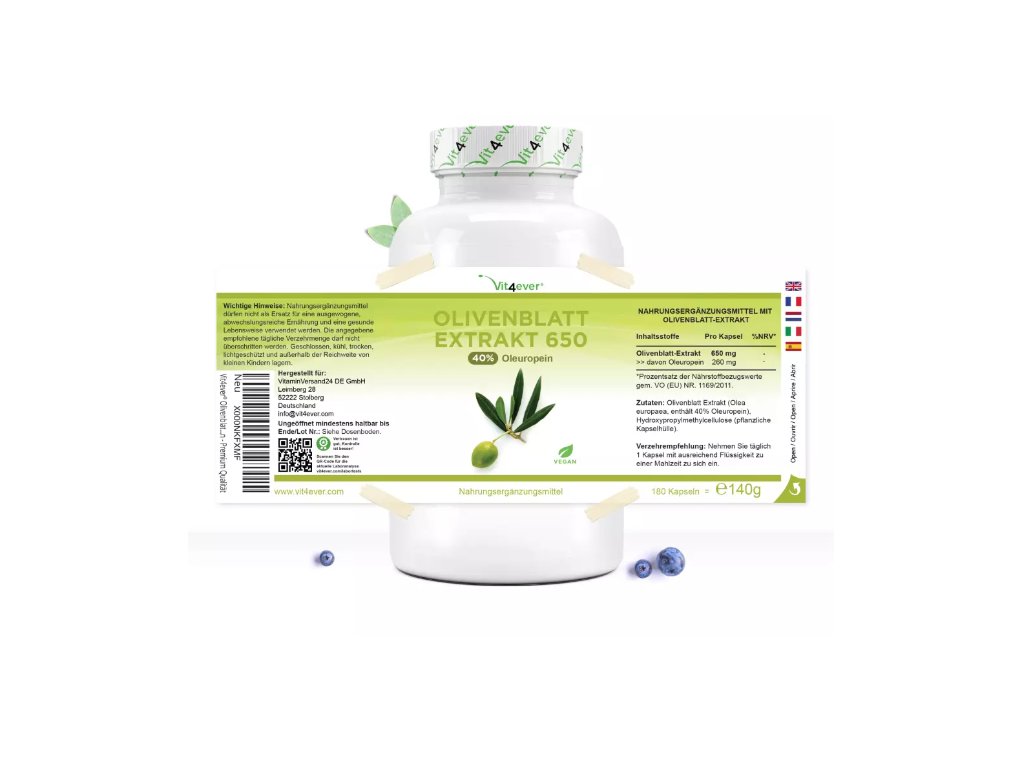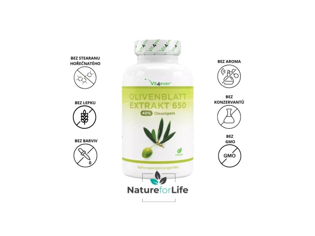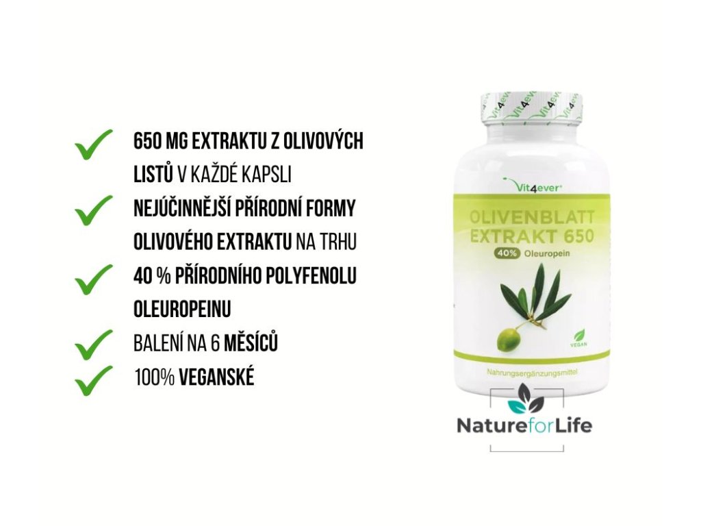 Vit4ever Olivový extrakt - 650 mg, 180 kapsúl Rastlinný extrakt s obsahom polyfenolov z olív