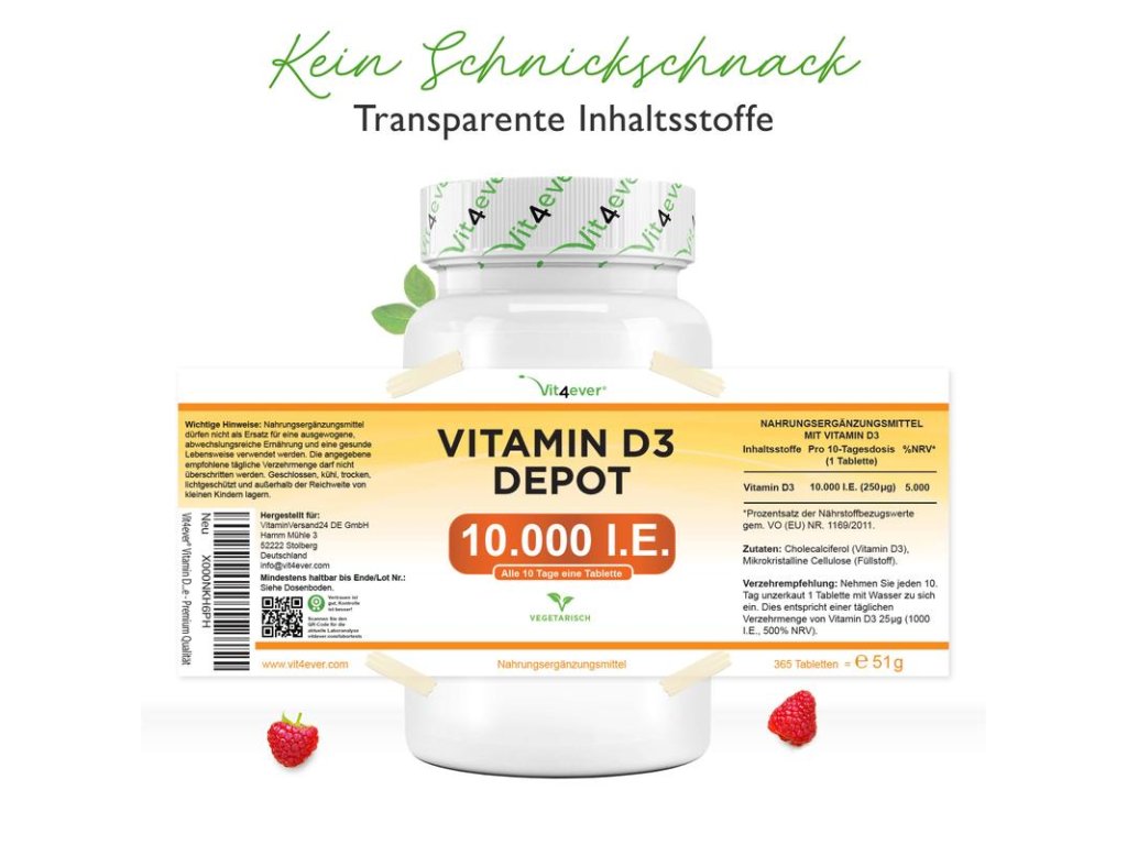 Vit4ever Vitamin D3 Depot 10 000 IU (250 mcg), 365 tabliet Vysokodávkovaný vitamín pre imunitu a kosti