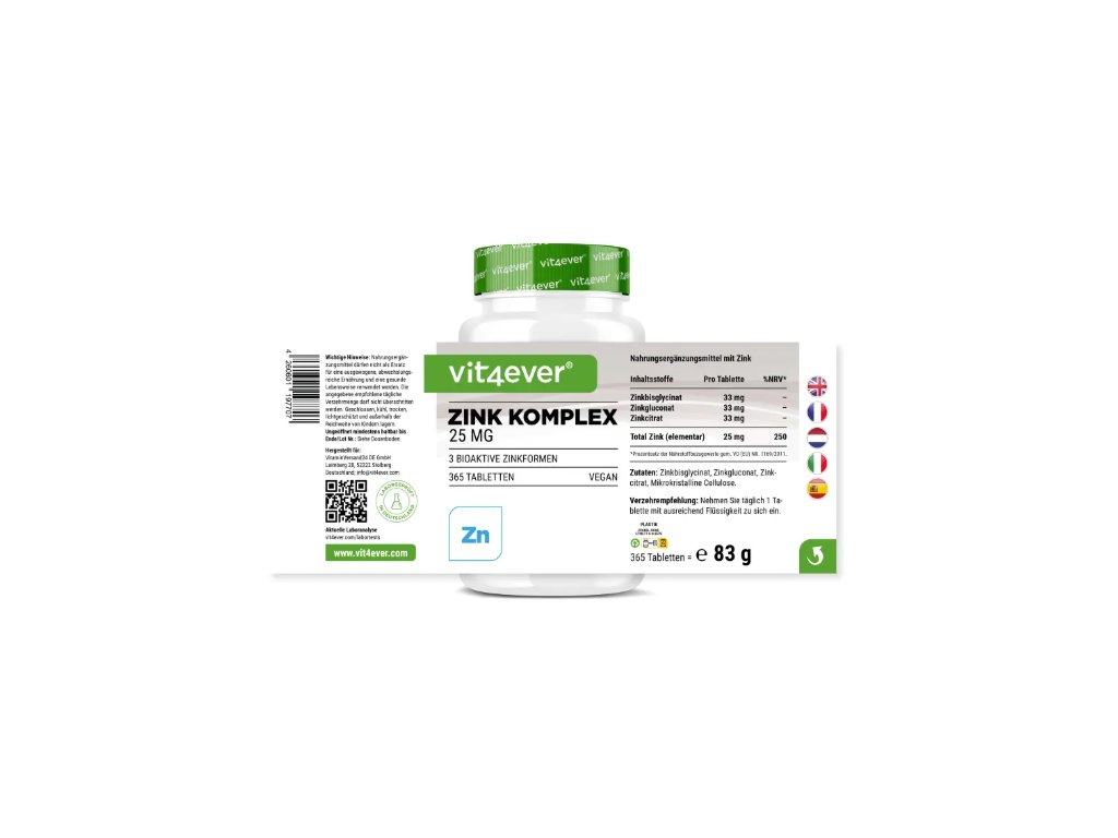 Vit4ever Zinkový komplex, Zinok s 3 bioaktívnymi formami, 25 mg, 365 tabliet Vyvážený komplex zinku v troch bioaktívnych formách
